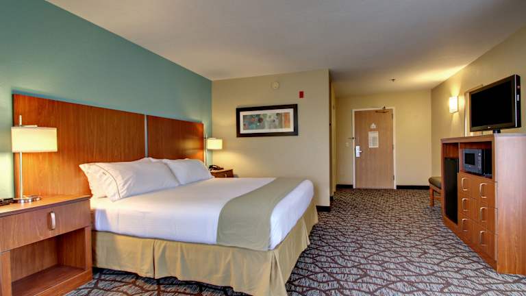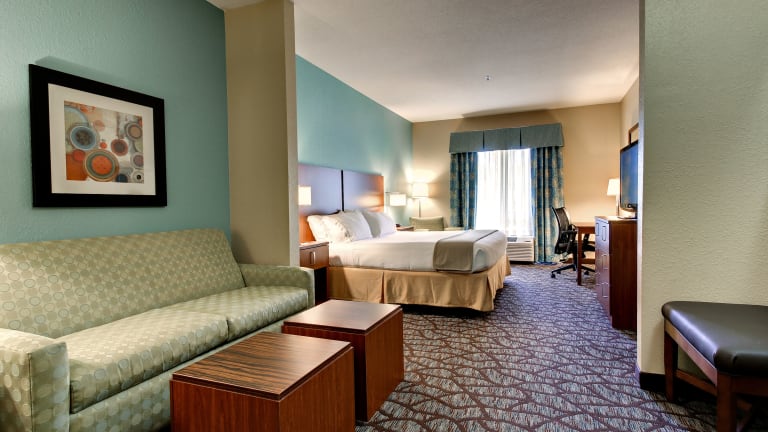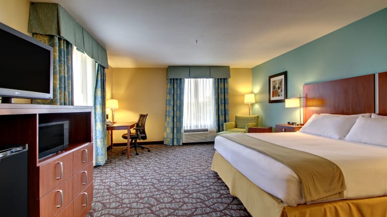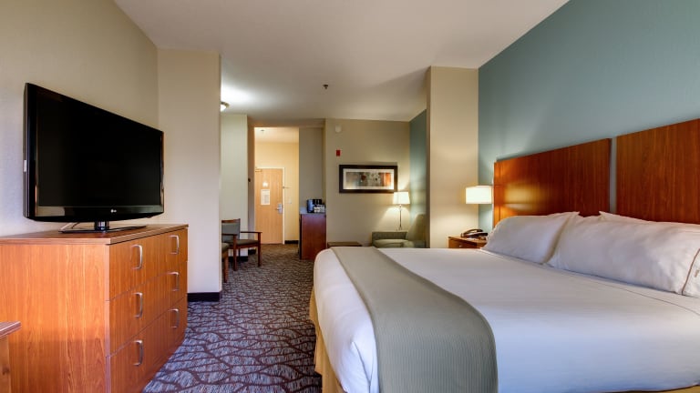 Das Holiday Inn Express Hotel & Suites bietet 80 Nichtraucherzimmer auf 3 Etagen. Das freundliche Personal an der Rezeption steht Ihnen gerne zur Verfügung und bietet einen Gepäckaufbewahrungsservice und einen Safe. WLAN ist kostenlos verfügbar. Das Hotel verfügt auch über rollstuhlgerechte Einrichtungen und einen Souvenirshop. Parkplätze stehen gegen Gebühr zur Verfügung.
