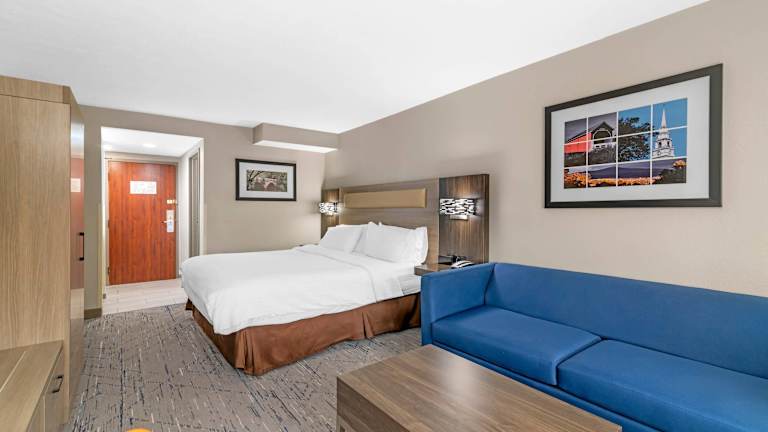Das Holiday Inn Express Keene bietet insgesamt 80 Zimmer auf 2 Etagen, welche bequem mit einem Aufzug erreichbar sind. Die Einrichtung umfasst eine Garderobe, einen Safe sowie einen Geldautomaten. Das Empfangspersonal steht den Gästen jederzeit zur Verfügung. Zur Ausstattung gehören auch rollstuhlgerechte Einrichtungen und es gibt Möglichkeiten zur Ausleihe von Velos.