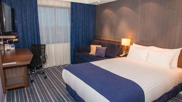Das moderne Holiday Inn Express bietet insgesamt 300 Nichtraucherzimmer auf 4 Etagen. Zur Einrichtung gehören eine Rezeption, Gepäckaufbewahrung, Wechselstube, Geldautomat und ein Getränkeautomat. Ein 24h-Sicherheitsdienst sorgt für die Sicherheit, während ein Souvenirshop und weitere Geschäfte die Einkäufe erleichtern. Gäste profitieren von einem kostenlosen Zugang zur Tageszeitung sowie einem Business-Center.