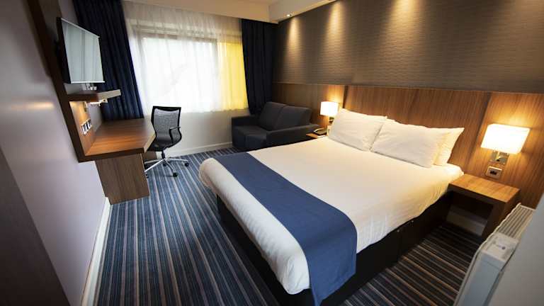 Das Hotel Holiday Inn Express Racecourse befindet sich innerhalb des Rennplatzes von Chester. Es liegt nur rund 500 m vom historischen Stadtzentrum entfernt, das charmante Pflasterstrassen, zahlreiche Einkaufsmöglichkeiten und Restaurants bietet, die bequem zu Fuss erreichbar sind. Der Flughafen ist ca. 17 km entfernt und der nächstgelegene Bahnhof ca. 1,5 km.