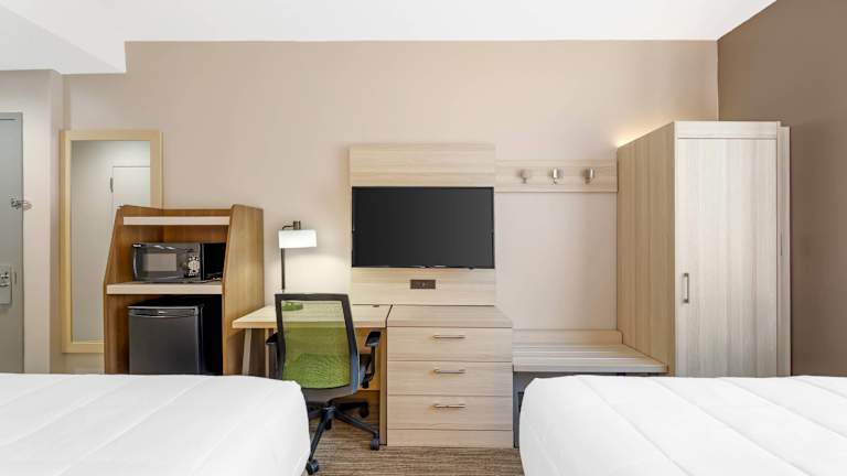 Das Holiday Inn Express Staten Island West bietet seinen Gästen einen angenehmen Aufenthalt in New York City. Das Hotel zeichnet sich durch seine gute Lage in der Nähe des Strandes aus und bietet eine Vielzahl von Annehmlichkeiten wie kostenloses WLAN, Parkplätze und einen Transferservice. Die Zimmer sind komfortabel ausgestattet und verfügen über moderne Annehmlichkeiten wie Klimaanlage, Fernseher und WLAN. Für Entspannung und Unterhaltung sorgen der Innenpool und das Fitnessstudio. Das Hotel bietet auch verschiedene Aktivitäten wie Radfahren, Golfen und Bowling. Das Frühstück ist im Übernachtungspreis enthalten.
