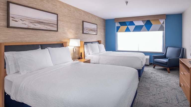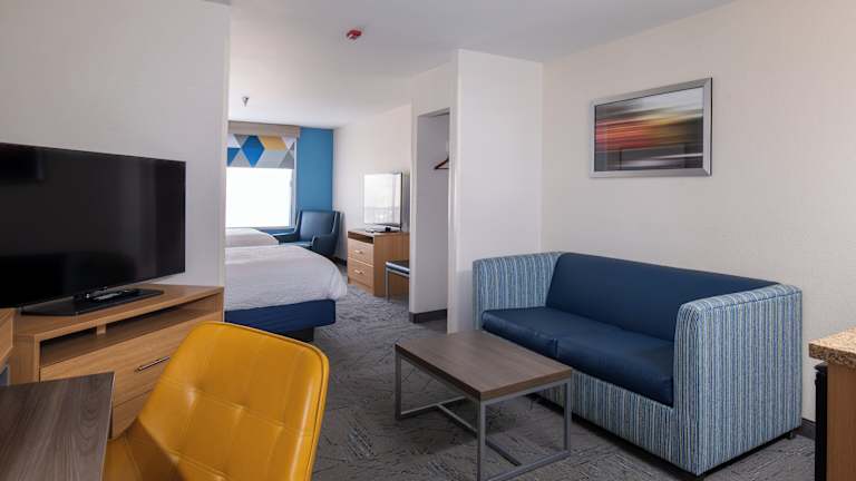 Das Holiday Inn Express & Suites Henderson bietet insgesamt 101 Zimmer verteilt auf 3 Etagen, die über einen Aufzug erreichbar sind. Die Unterkunft bietet eine Vielzahl von Services, darunter eine rund um die Uhr besetzte Rezeption, einen Gepäckaufbewahrungs-Service, einen Safe sowie eine Garage und Parkiermöglichkeiten. Das Hotel hat ein gemütliches Ambiente und ist sowohl für Geschäftsreisende als auch für Feriengäste geeignet.