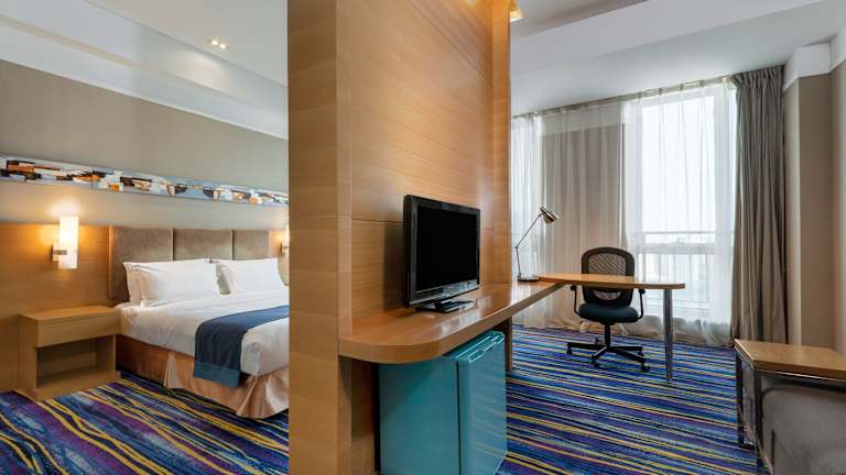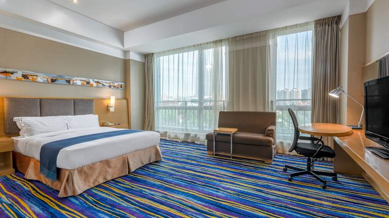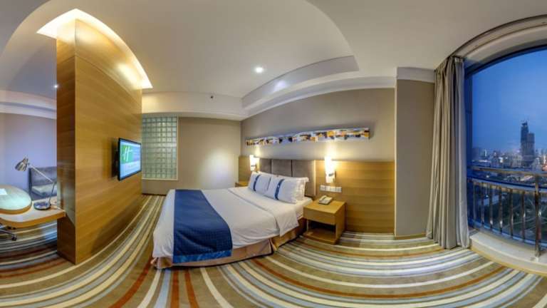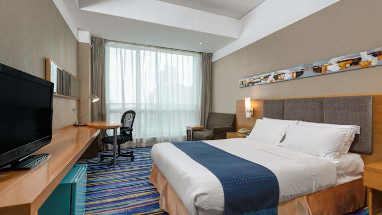 Das Holiday Inn Express Tianjin Heping verfügt über 176 Zimmer, die sich auf 19 Etagen verteilen. Es bietet eine moderne und heimelige Atmosphäre mit praktischem Zugang zu Einrichtungen wie einer 24-Stunden-Rezeption, einem Souvenirshop, einem Getränkeautomaten und einem Zeitungskiosk. Die Unterkunft ist auch rollstuhlgerecht und bietet behindertengerechte Annehmlichkeiten. WLAN ist in den öffentlichen Bereichen verfügbar, und es stehen Parkmöglichkeiten gegen Gebühr zur Verfügung.
