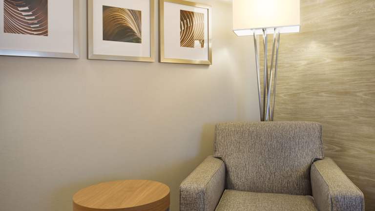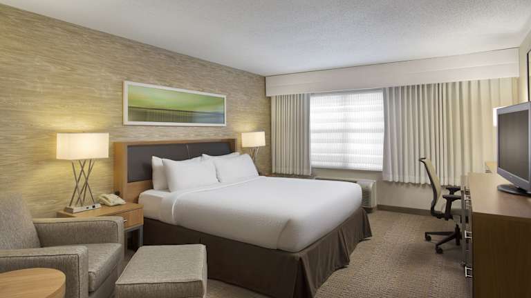 Holiday Inn Grand Rapids Airport verfügt über 148 Zimmer und bietet eine Reihe von Annehmlichkeiten, die den Aufenthalt angenehm gestalten. Ein freundliches Personal an der Rezeption sorgt für einen reibungslosen Aufenthalt und ist bei Fragen gerne behilflich. Zur Ausstattung gehören ein Aufzug, eine Gepäckaufbewahrung, ein Safe, ein Geldautomat sowie ein Minimarkt. Das Hotel ist rollstuhlgerecht und bietet auch behindertengerechte Annehmlichkeiten. WLAN steht kostenlos zur Verfügung. Zu den weiteren Einrichtungen zählen ein Zeitungskiosk, ein TV-Raum, ein beheizter Innen- und Aussenpool sowie ein Whirlpool. Gäste können zudem in der hoteleigenen Garage (gegen Gebühr) parkieren. Das Hotel bietet auch einen kostenlosen Shuttleservice zum nahegelegenen internationalen Flughafen Gerald R. Ford.
