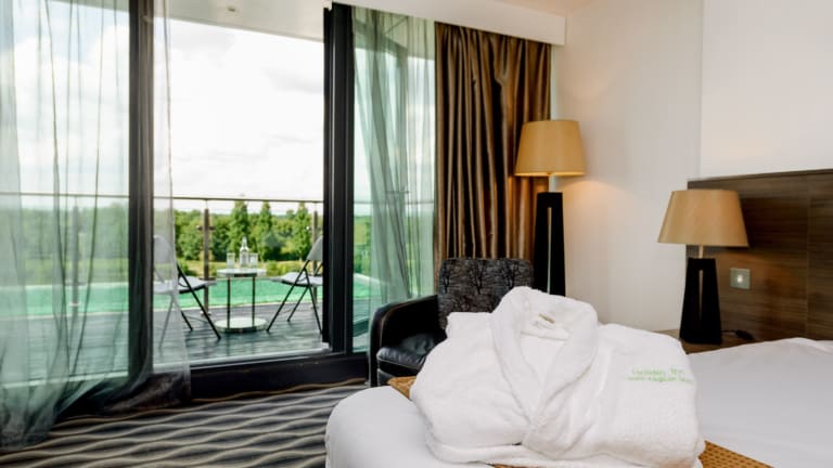 Die klimatisierten Zimmer bieten ein angenehmes Raumklima und sind ausgestattet mit einem Balkon oder einer Terrasse, einem Doppelbett, einer Minibar sowie einem Schreibtisch. Die Zimmer verfügen über Tee- und Kaffeezubehör, einen Kühlschrank, Sat-TV und gratis Wifi. Im Badezimmer sind eine Dusche und eine Badewanne vorhanden, ergänzt durch Kosmetikartikel und einen Haartrockner. Es sind auch rollstuhlgerechte Zimmer erhältlich.