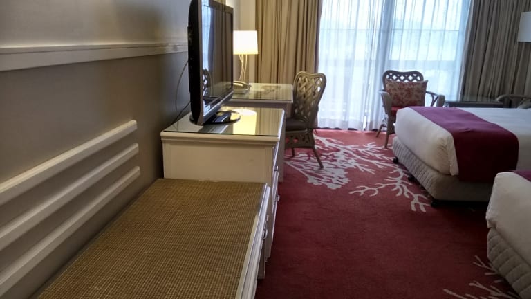 Die Zimmer sind mit Teppichböden, Klimaanlage, Balkon oder Terrasse mit Meerblick, Doppelbetten, Safe, Minibar, Tee-/Kaffeemaschine sowie einem Bügelset ausgestattet. Ein Telefon mit Direktwahl, TV, Radio, Stereoanlage und Wi-Fi sind ebenfalls vorhanden. Die Badezimmer sind mit Dusche und Badewanne, Haartrockner, Kosmetikspiegel und Bademänteln ausgestattet. Familienzimmer und rollstuhlgerechte Zimmer sind ebenfalls verfügbar.
