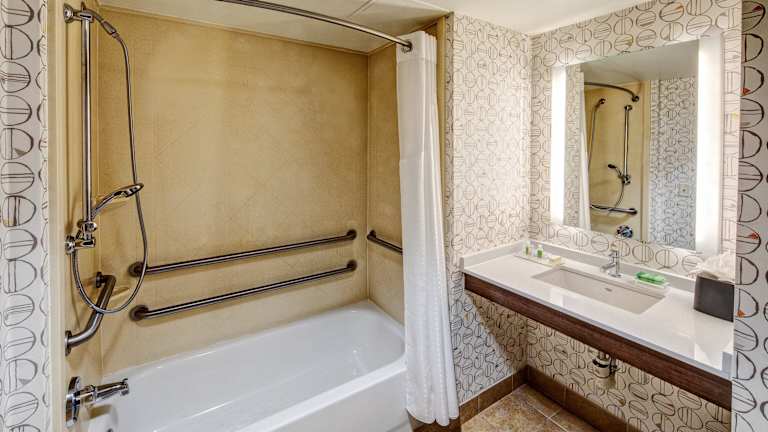 Die Zimmer sind klimatisiert und verfügen über ein Doppelbett sowie ein Sofabett. Zur Ausstattung gehören ein Kühlschrank, eine Mikrowelle, eine Tee-/Kaffeekocher, ein Schreibtisch, ein Safe und ein Flachbild-TV. Im Badezimmer sind sowohl eine Dusche als auch eine Badewanne vorhanden. Rollstuhlgerechte Zimmer sind ebenfalls verfügbar.