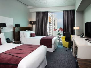 Die Zimmer sind mit Klimaanlage, individuell regulierbarer Heizung, Minibar und Tee-/Kaffeemaschine ausgestattet. Ein Safe, ein TV-Gerät sowie ein Direktwahltelefon sind ebenfalls vorhanden. Die Badezimmer verfügen über Dusche und Badewanne, Haartrockner und Bademäntel. Rollstuhlgerechte Zimmer sind auf Anfrage ebenfalls verfügbar.