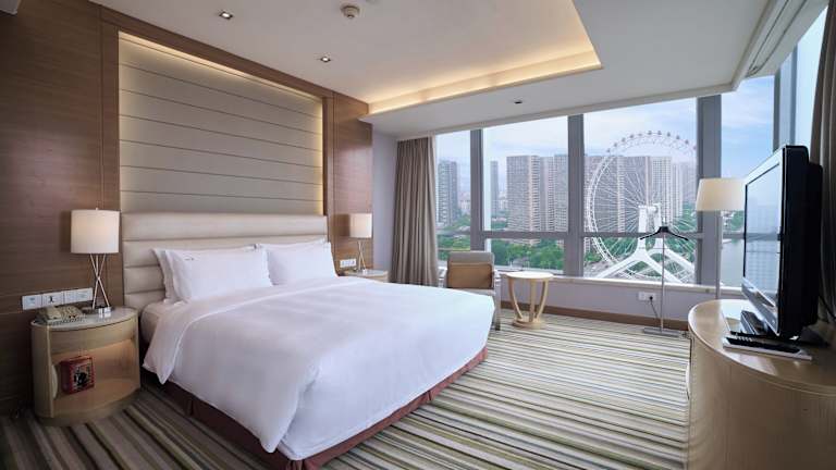 Die Zimmer im Holiday Inn Tianjin sind in sanften Farben gehalten und verfügen über Teppichböden, Klimaanlage, Heizungsoption, Kabel-/Sat-TV, eine Minibar sowie einen Haartrockner. In einigen Zimmern können die Gäste eine schöne Aussicht auf das Auge von Tianjin geniessen. Die Zimmer sind standardmässig mit einem Schreibtisch, einem Kühlschrank und einer Tee-/Kaffeemaschine ausgestattet. Familienzimmer und rollstuhlgerechte Zimmer sind ebenfalls verfügbar.
