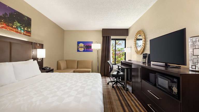 Die Zimmer verfügen über Klimaanlage, Heizung, ein Doppelbett, ein Queensize-Bett oder ein Kingsize-Bett. Ein Safe, ein Schreibtisch, ein Kühlschrank, ein Minikühlschrank und eine Mikrowelle sind vorhanden. Weitere Annehmlichkeiten sind eine Tee-/Kaffeemaschine, ein Telefon, ein TV-Gerät, ein Radio, ein Wecker sowie kostenfreies Wifi. Badezimmer sind ausgestattet mit Dusche und Badewanne sowie Haartrockner. Zudem sind rollstuhlgerechte Zimmer erhältlich. Nichtraucher- und Raucherzimmer stehen zur Auswahl.