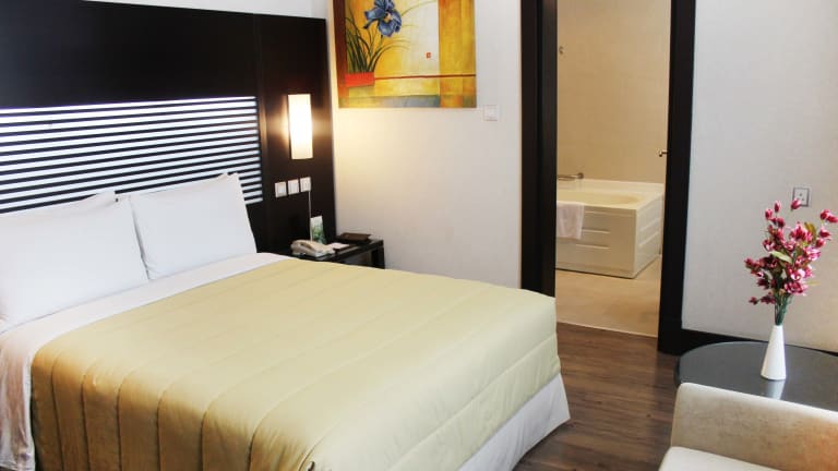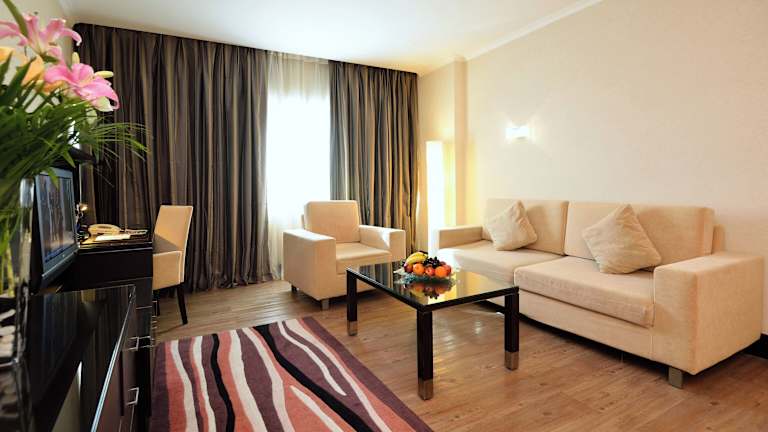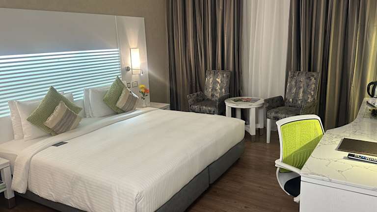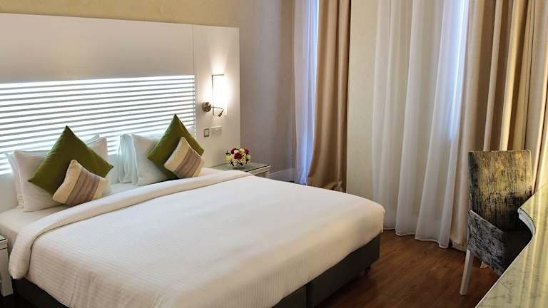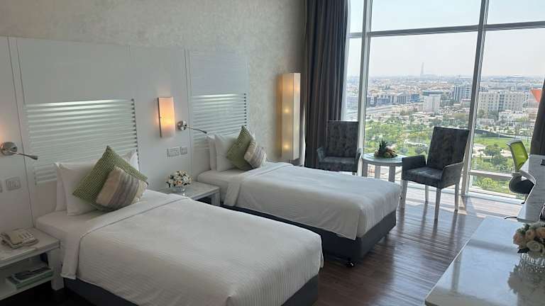 Die Zimmer sind klimatisiert und bieten auf Wunsch einen Balkon oder eine Terrasse mit Stadtblick. Ausgestattet sind die Zimmer mit Teppichböden, Doppelbetten, Queensize- oder Kingsize-Betten, sowie einem Safe, einer Minibar, einem Schreibtisch und einem Kühlschrank. Für den kleinen Genuss zwischendurch stehen eine Mikrowelle und eine Tee-/Kaffeemaschine bereit. Je nach Zimmerkategorie sind sowohl Nichtraucher- als auch Rauchzimmers verfügbar.