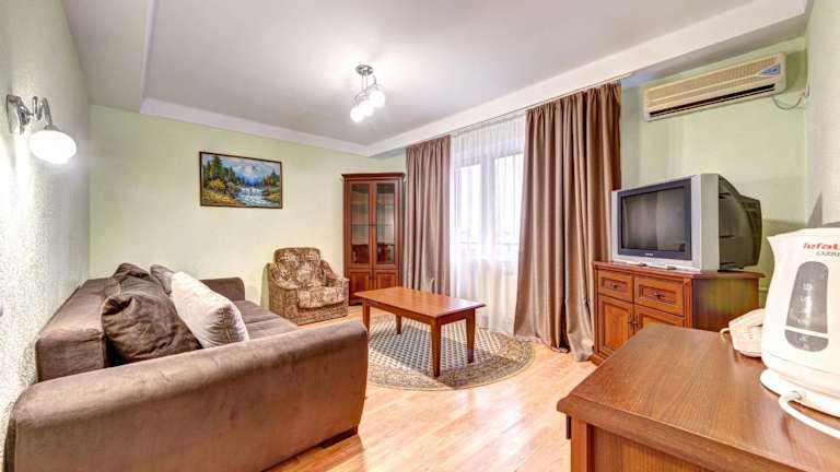 Das Hotel Holosiyvsky bietet eine helle und einladende Atmosphäre. Gäste haben Zugang zu einer 24-Stunden-Rezeption sowie einem hauseigenen Schönheitssalon und Friseur. Die Unterkunft verfügt über Zimmer, die mit Balkonen, Kabel-TV und einem Schreibtisch ausgestattet sind, ideal für einen komfortablen Aufenthalt.