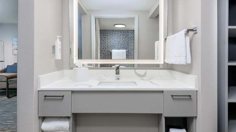 Die Zimmer im Homewood Suites verfügen über ein Wohnzimmer, eine voll ausgestattete Küche mit Kühlschrank und Mikrowelle sowie ein Badezimmer mit Dusche und Badewanne. Annehmlichkeiten wie Klimaanlage, Heizung, Sat-TV, WiFi (ohne Gebühr) und ein Bügelset bieten zusätzlichen Komfort. Die Zimmer sind mit einem Sofabett ausgestattet und bieten Platz für Familien und Nichtraucher. Für Gäste mit besonderen Bedürfnissen sind rollstuhlgerechte Zimmer verfügbar.