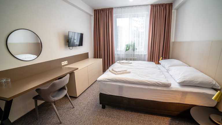 Das Hotel Hotelový Dům in Olomouc bietet Ihnen eine komfortable Unterkunft in günstiger Lage. Genießen Sie kostenloses WLAN und Parkplätze, während Sie die Stadt und ihre Umgebung erkunden. Die Zimmer sind gut ausgestattet und verfügen über ein eigenes Bad, einen TV und einen Kühlschrank. Nutzen Sie auch den praktischen Fahrradraum. Die zentrale Lage ermöglicht es Ihnen, das Stadtzentrum bequem zu erreichen und Ausflüge zum Wasserpark, Zoo, Skigebiet Hlubocky und Golfplatz Olomouc zu unternehmen. Der Busbahnhof und der Bahnhof sind ebenfalls in der Nähe.