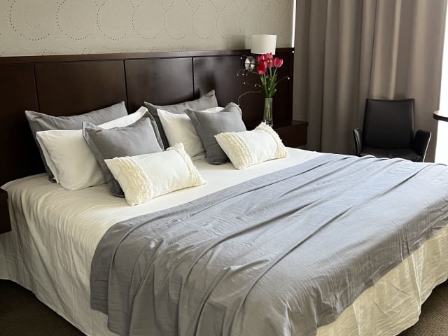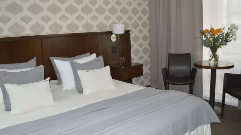 In den Zimmern sorgen eine individuell steuerbare Klimaanlage und Heizung für Bequemlichkeit. Die Zimmer sind ausgestattet mit einem Doppelbett, Queensize-Bett oder Kingsize-Bett, einer Minibar, einem Safe, einem Schreibtisch und einer Tee-/Kaffeemaschine. Einige Zimmer bieten einen Balkon mit Stadtblick. Die Badezimmer sind mit Dusche, Badewanne und Bidet ausgestattet.