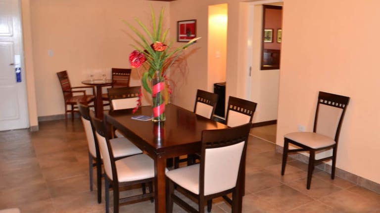 Das Hotel Howard Johnson Inn Rosario de la Frontera bietet eine heimelige Atmosphäre mit einem grossen Garten und einem Outdoor-Pool. Die Einrichtung umfasst 20 Zimmer und einen Empfangsbereich mit Rezeption. Zu den Annehmlichkeiten gehören ein Kamin und ein Spielplatz. Gäste können im TV-Raum, im Spielzimmer oder im Wellnessbereich entspannen. Rollstuhlgerechte Einrichtungen sind ebenfalls vorhanden. Gebührenfreie Parkiermöglichkeiten stehen bereit, und es werden Unterstützung bei der Buchung von Ausflügen sowie eine Kinderbetreuung angeboten.