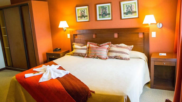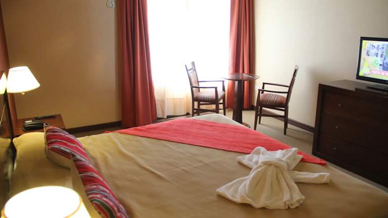 Die Zimmer sind mit Teppichböden ausgestattet und haben eine heimelige Holzverkleidung. Ausgestattet sind sie mit einer Minibar, Klimaanlage, Safe und Plasma-TV. Kostenfreies Wifi steht in den Zimmern zur Verfügung. Einige Zimmer verfügen über eine eigene Hydromassage-Badewanne. Familien- und Nichtraucherzimmer sind ebenfalls buchbar.