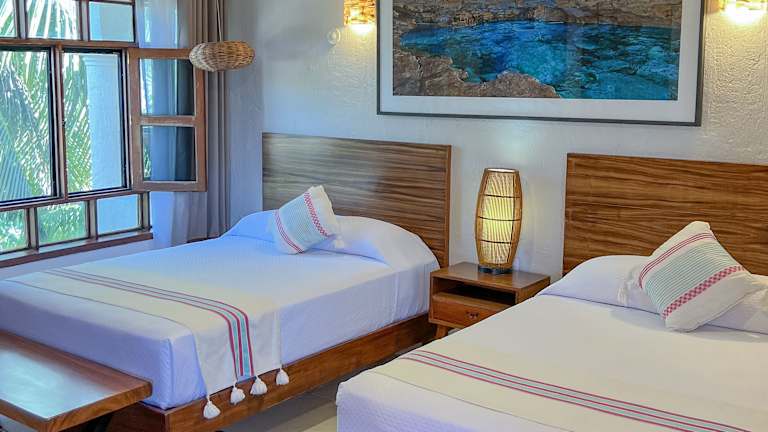 Das Hotel Hulku in Playa del Carmen bietet seinen Gästen einen entspannten Aufenthalt in unmittelbarer Nähe zu den Stränden. Mit seinem weitläufigen Garten, der Holzterrasse mit Hängematten und dem schönen Brunnen lädt es zum Verweilen und Entspannen ein. Die Zimmer sind komfortabel ausgestattet und einige verfügen über eine Kaffeemaschine und eine Küchenzeile. Das Hotel liegt zentral und in der Nähe der Quinta Avenida mit ihren zahlreichen Restaurants, Bars und Diskotheken. Es ist auch ein idealer Ausgangspunkt, um die Umgebung zu erkunden, einschließlich des Vergnügungsparks Xcaret und des Zentrums von Puerto Aventura.