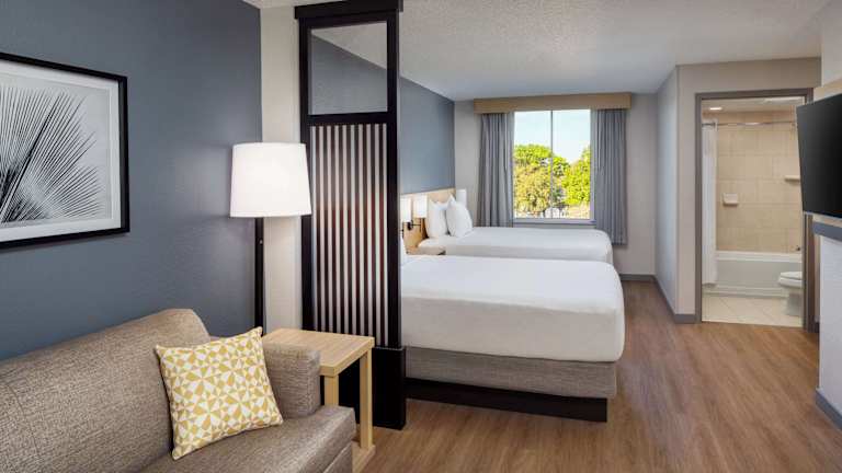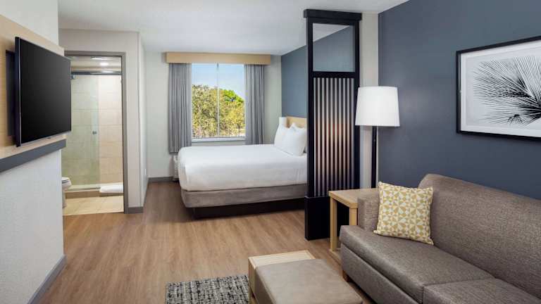 Das Hyatt Place Lake Mary/Orlando North verfügt über insgesamt 128 Nichtraucherzimmer, die auf 4 Etagen verteilt sind. Die Zimmer sind komfortabel eingerichtet und verfügen über Klimaanlage, individuell regelbare Heizung, ein Doppelbett und ein Sofabett. Zur Ausstattung gehören auch ein Safe, ein Schreibtisch, ein Kühlschrank, ein Minikühlschrank, eine Mikrowelle, eine Tee-/Kaffeemaschine und ein Bügelset. Die Zimmer sind mit einem TV-Gerät mit Satelliten-/Kabelempfang, einem Radio und WLAN ausgestattet. Im Badezimmer gibt es eine Dusche, eine Badewanne und einen Haartrockner. Rollstuhlgerechte Zimmer mit barrierefreiem Badezimmer sind ebenfalls verfügbar.