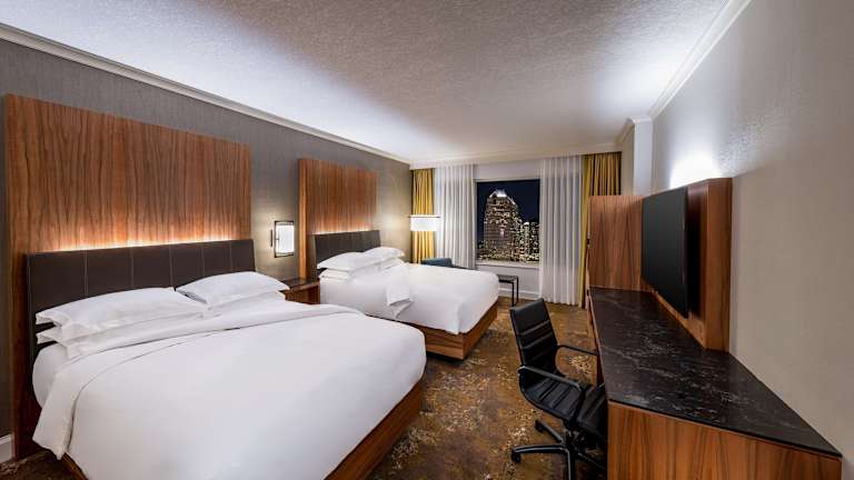 Die Zimmer im Hyatt Regency Calgary sind mit Klimaanlage, Heizung und Teppichböden ausgestattet. Sie verfügen über ein Doppelbett, ein Queensize-Bett oder ein Kingsize-Bett, sowie einen Sitzbereich und einen Schreibtisch. Zu den weiteren Annehmlichkeiten gehören ein Kühlschrank, eine Mikrowelle, eine Tee-/Kaffeemaschine und ein Safe. Im Badezimmer finden Gäste eine Dusche und eine Badewanne vor, sowie kostenfreie Pflegeprodukte und einen Haartrockner. Es sind auch rollstuhlgerechte Zimmer mit barrierefreiem Bad erhältlich.