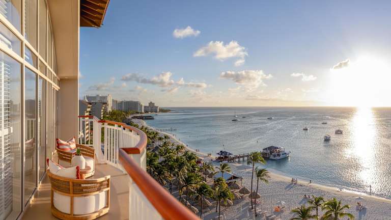 Die neu gestalteten Zimmer im Hyatt Regency Aruba Resort & Casino sind modern und stilvoll eingerichtet. Sie sind inspiriert vom türkisblauen Wasser von Aruba und bieten eine einladende Atmosphäre. Die Zimmer verfügen über komfortable Betten, einen Flachbild-TV und geräumige Badezimmer mit hochwertigen Materialien.