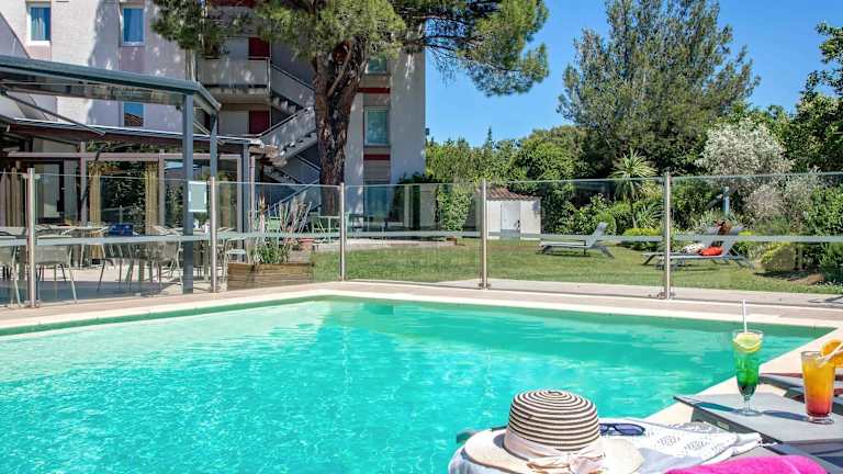 Im gastronomischen Bereich erwartet die Gäste ein Restaurant und eine Bar. Das tägliche Frühstücksbuffet beinhaltet sowohl süsse als auch herzhafte Speisen wie Eier, Obstsalat, Joghurt und Säfte. Auch Backwaren und frische französische Madeleine-Kuchen stehen zur Auswahl. Auf der Terrasse am Pool können die Gäste erfrischende Getränke geniessen. Bei Bedarf werden zudem Kindermenüs angeboten.