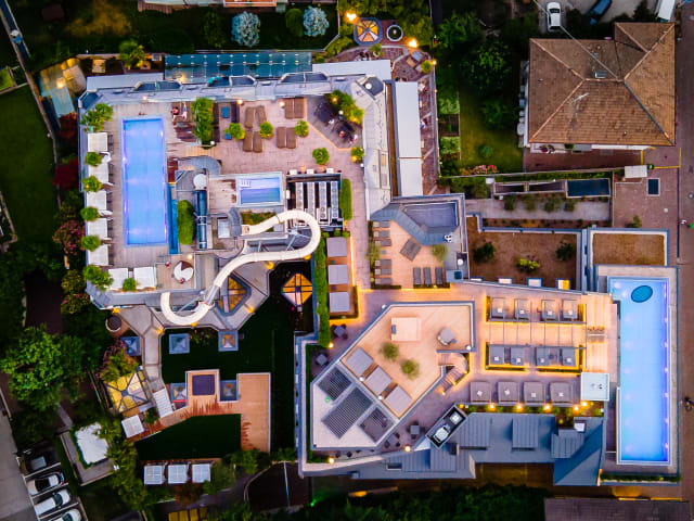 Unser Hallenschwimmbad mit Familysauna und der "adults-only" Saunabereich mit Finnischer Sauna, Biosauna und Türkischem Dampfbad lädt täglich zum Erholen ein. Entspannen Sie nach den täglichen Aufgüssen in einem unserer beiden Ruheräume. Genießen Sie die Sonnenstunden auf unserer Dachterrasse mit beheiztem Panoramaschwimmbad, Whirlpool und Rutschbahn (Saisonsbedingt - geöffnet von April bis Oktober)