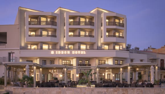 Liegt an der Strandstrasse, am Rand der Altstadt von Rethymno direkt vor dem Meer und unterhalb der Venezianischen Festung. Der malerische Hafen, nur 5 Gehminuten vom Hotel entfernt. Die lebhaften Einkaufsstrassen liegen nur einen Katzensprung weit, gleich um die Ecke. Bars, Cafes und Tavernen sind einfach zu Fuss erreichbar. Die Zufahrt von den Flughaefen Heraklion und Chania dauert 1 Stunde.