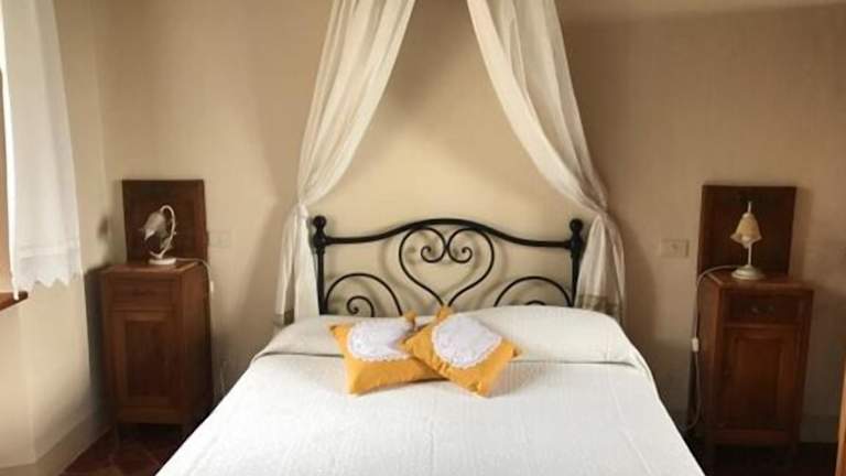 Die Zimmer im Il Vicario-Podere di Monti befinden sich im historischen Hauptgebäude und strahlen einen rustikalen Charme aus. Mit Holzbalkendecken, Terrakottaböden und antiken Möbeln bieten sie eine gemütliche und authentische Atmosphäre. Das separate Apartment bietet sogar einen atemberaubenden 360-Grad-Blick auf die toskanische Landschaft.