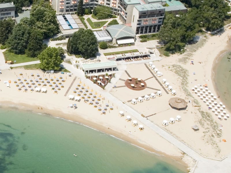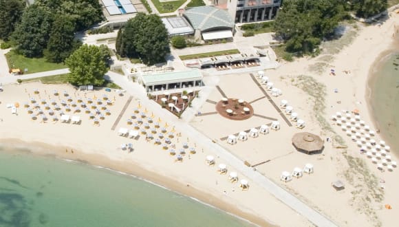 Das Hotel befindet sich direkt am Sandstrand in zentraler Lage von Goldstrand. Die Lage bietet einfachen Zugang zum Strand mit Liegen und Sonnenschirmen gegen Gebühr.