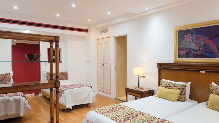 Die Zimmer bieten ein angenehmes Raumklima durch Klimaanlage und individuell steuerbare Heizung. Die mit Teppichböden ausgestatteten Zimmer haben ein Doppelbett oder eine Queensize-Bett. Weitere Ausstattungen umfassen einen Safe, eine Minibar, einen Schreibtisch und einen TV mit Satelliten-/Kabelempfang. Auch ein Telefon mit Direktwahl sowie Wifi sind vorhanden. Die Badezimmer sind mit Dusche, Badewanne, Bidet und kostenlosen Pflegeprodukten ausgestattet.