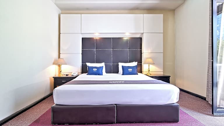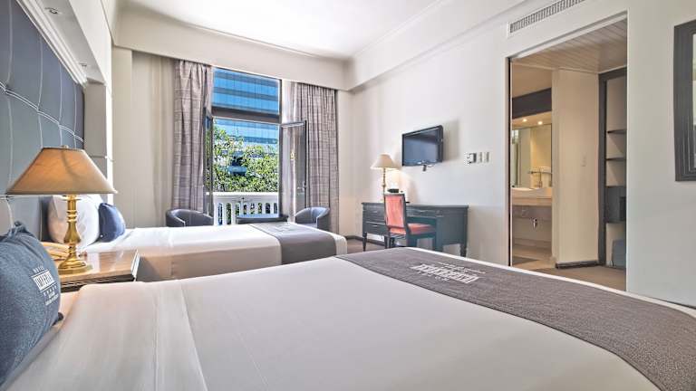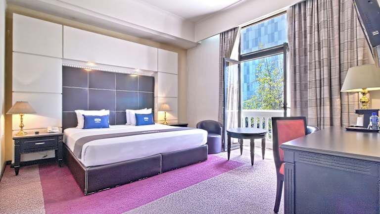 Die Zimmer sind elegant und im klassischen Stil ausgestattet. Sie verfügen über Klimaanlage, ein eigenes Bad mit Dusche und Badewanne, Pflegeprodukte sowie einen Haartrockner. Weitere Annehmlichkeiten sind ein Kabel-TV, ein Safe, eine Minibar, ein Schreibtisch und kostenfreies WLAN. Die Gäste können den Stadtblick von einem Balkon oder einer Terrasse geniessen. Rollstuhlgerechte Zimmer sind ebenfalls buchbar.