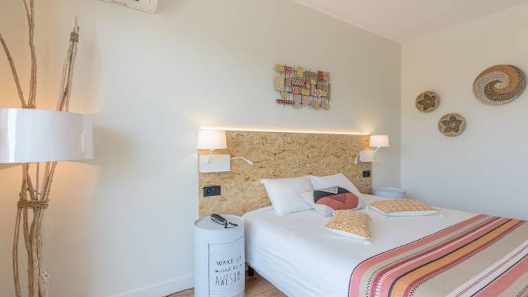 Die hellen, modernen Zimmer sind klimatisiert und bieten eine Heizung. Einige Zimmer verfügen über einen eigenen Balkon mit Meerblick. Ausgestattet sind die Zimmer mit einem Kühlschrank, einem Flachbild-TV, einem Telefon, einer Minibar sowie WLAN ohne Gebühr. Im Badezimmer befinden sich eine Dusche oder Badewanne sowie ein Haartrockner. Das Hotel bietet Familien- und Nichtraucherzimmer.