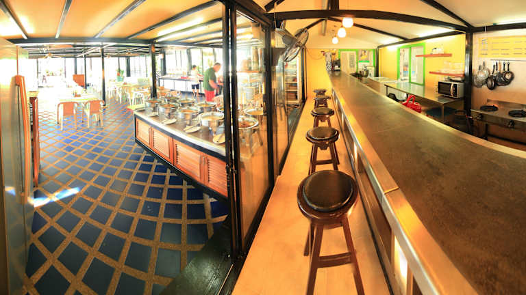 Die Unterkunft bietet verschiedene gastronomische Einrichtungen, darunter ein Restaurant, ein Café und eine Bar. Morgens erwartet die Gäste ein kontinentales Frühstück, das aus einem Buffet-Angebot besteht.