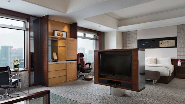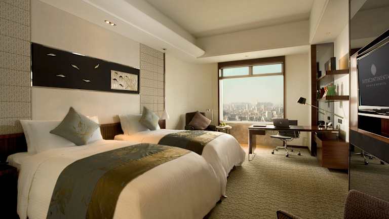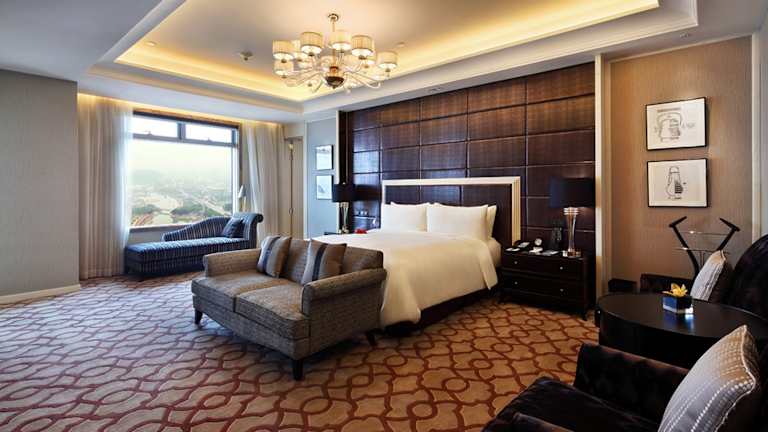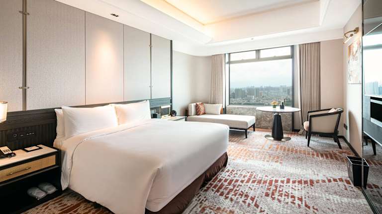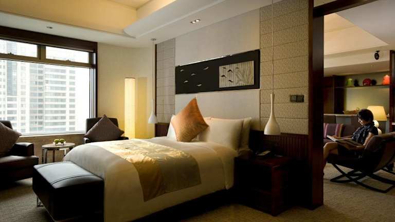 Die geräumigen Zimmer sind modern gestaltet und weisen chinesische Einflussfaktoren auf. Jedes Zimmer ist mit einem Flachbild-Kabel-TV, einer Minibar und einem Safe ausgestattet. Ein eigenes Bad mit Badewanne und Pflegeprodukten sorgt für weiteren Komfort.