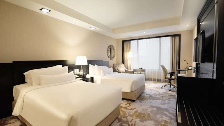 Die Zimmer sind klimatisiert und verfügen über modernes Interieur mit Teppichboden. Sie sind ausgestattet mit einem Doppelbett oder Kingsize-Bett, einem Schreibtisch, einem Minikühlschrank, einer Tee-/Kaffeemaschine und kostenlosem Wifi. Die Badezimmer sind mit einer Badewanne, Dusche, Haartrockner und Bademänteln ausgestattet. Auch Familienzimmer sind verfügbar und rollstuhlgerechte Zimmer können angefragt werden.