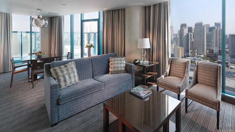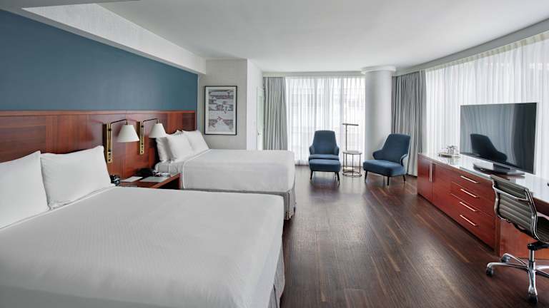 Die Zimmer sind modern und komfortabel eingerichtet, mit Klimaanlage und Heizung. Sie verfügen über ein Doppelbett, ein Sofabett sowie einen Balkon oder eine Terrasse mit Stadtblick. Zu den weiteren Annehmlichkeiten gehören eine Minibar, ein Schreibtisch, ein Safe, eine Kaffeemaschine und ein Flachbild-TV. Die Badezimmer sind mit Dusche und Badewanne ausgestattet und bieten Bademäntel sowie Kosmetikartikel. Rollstuhlgerechte Zimmer sind ebenfalls erhältlich.