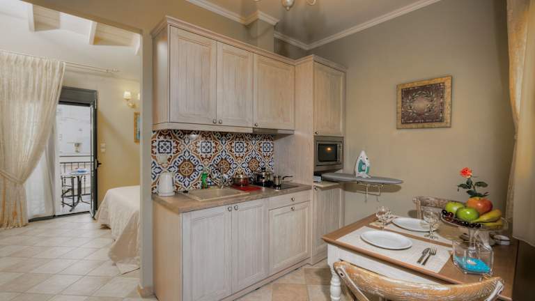 Das Ionia Suites bietet eine herzliche Atmosphäre und einen zuverlässigen Service durch das freundliche Personal an der Rezeption. Die Unterkunft verfügt über verschiedene Einrichtungen, darunter einen Indoor- und Outdoor-Pool mit Sonnenliegen und Sonnenschirmen. Für die Bequemlichkeit der Gäste sind auch rollstuhlgerechte Einrichtungen und ein Aufzug vorhanden. Zudem stehen eine Rezeptionsdienstleistung rund um die Uhr sowie eine Gepäckaufbewahrung und ein Geldautomat zur Verfügung. Kostenloses WLAN ist in den öffentlichen Bereichen verfügbar. Die Unterbringung bietet elegante Zimmer mit einer gut ausgestatteten Kochnische in neutralen Farben, klassischen Möbeln und hypoallergenen Matratzen.