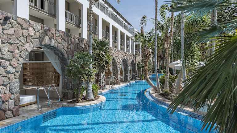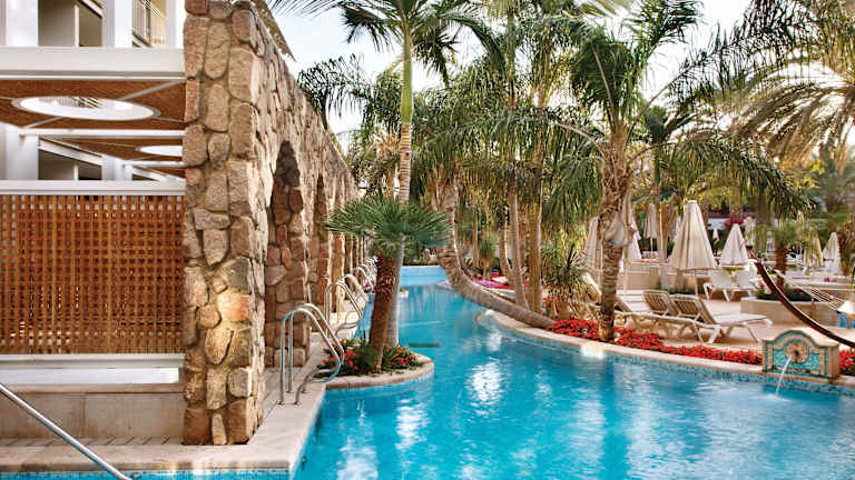 Das Hotel Isrotel Agamim bietet eine entspannende Atmosphäre mit einer einzigartigen Gestaltung der Poollandschaft, die teilweise direkten Zugang zu den Zimmerterrassen gewährleistet. Es handelt sich um ein Nichtraucherhotel mit einem umfangreichen Angebot, das eine 24-Stunden-Rezeption, einen Fitnessraum und ein Spa umfasst.