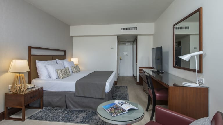 Die Zimmer im Hotel sind klimatisiert und bieten meist einen Balkon. Zur Ausstattung gehören ein Doppelbett, ein Sofabett, Safe, Minibar, Kaffee-/Teezubereiter sowie Unterhaltungsmöglichkeiten wie TV mit Satelliten-/Kabelempfang und WLAN. Die Badezimmer sind mit Dusche und Badewanne ausgestattet, und es sind auch rollstuhlgerechte Zimmer erhältlich.