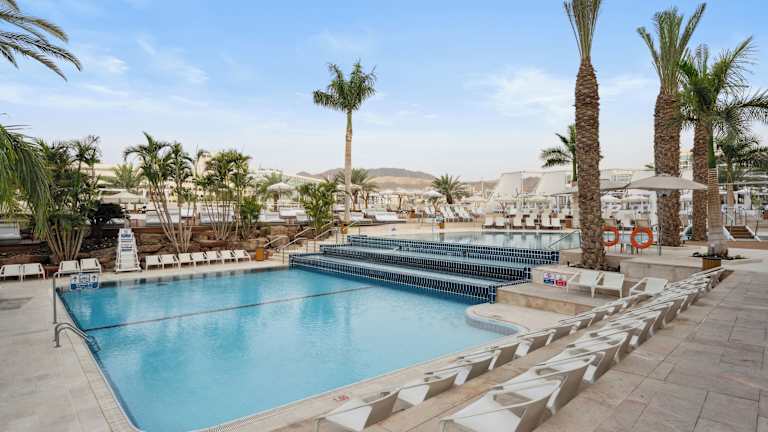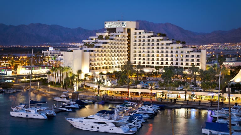 Das Hotel Isrotel King Solomon ist ein umfangreiches, familienfreundliches Hotel am Ufer der Lagune in Eilat. Es verfügt über 420 Zimmer, einschliesslich 9 Junior-Suiten, 10 Suiten, 18 Studios und 20 Einzelzimmer, die sich auf ein 11-stöckiges Haupthaus und ein 12-stöckiges Nebengebäude verteilen. Die Einrichtung des Hotels umfasst eine Gepäckaufbewahrung, ein Geschäft, einen Souvenirshop sowie eine Vielzahl an Annehmlichkeiten, darunter ein Wellnessbereich, ein Spielzimmer und einen Garten. Unterstützung erhalten die Gäste durch das mehrsprachige Personal an der rund um die Uhr geöffneten Rezeption. Das Hotel bietet ebenfalls eine Konferenzraum für geschäftliche Veranstaltungen sowie eine 24-Stunden-Zimmer- und Wäscheservice an.