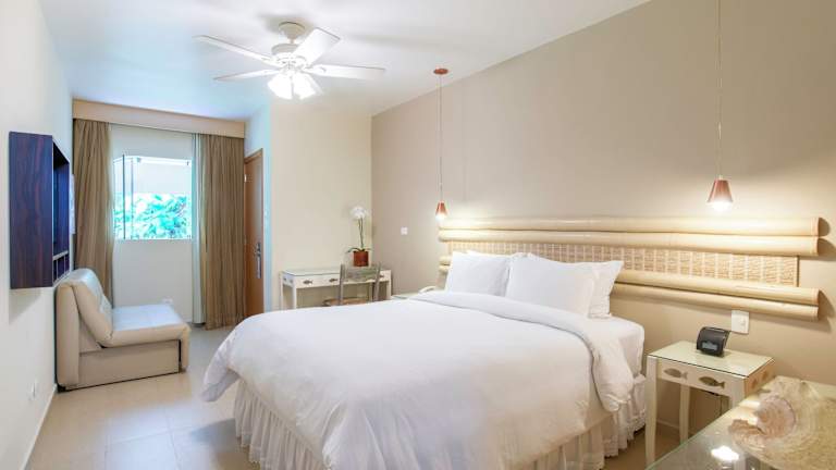 Die Zimmer im Hotel Itapemar sind stilvoll eingerichtet und bieten moderne Annehmlichkeiten wie Klimaanlage und TV. Einige Zimmer verfügen über einen privaten Balkon mit Panoramablick.