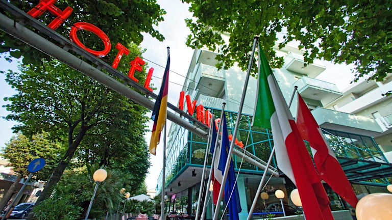 Das Hotel befindet sich in Rimini, nur etwa 80 Meter vom Strand entfernt. Der nächstgelegene Flughafen, der Flughafen Federico Fellini, liegt 7 km entfernt. Die Umgebung lädt dazu ein, mit dem Velo erkundet zu werden.