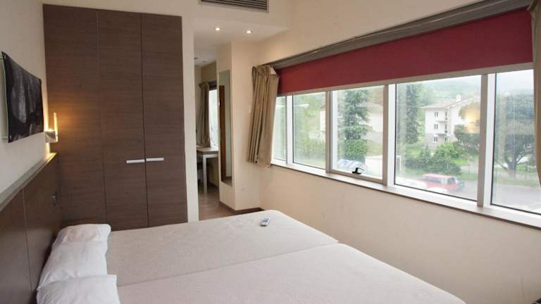 Das Hotel Izelai in Alsasua ist ein modernes Hotel mit einem minimalistischen Design, das Ihnen ein komfortables und stilvolles Erlebnis bietet. Genießen Sie den großzügigen Raum und das Tageslicht in den geräumigen Zimmern, die mit attraktiven Kunstdrucken und Glas gestaltet sind. Die Minibar versorgt Sie mit kostenlosen Getränken und Snacks, während Sie den Blick auf die beeindruckende Urbasa Sierra genießen. Das hoteleigene italienische Restaurant bietet Ihnen drei Mahlzeiten am Tag und die Bar ist der perfekte Ort, um sich zu entspannen. Wenn Sie lokale Küche bevorzugen, finden Sie in einem typischen Restaurant auf der gegenüberliegenden Straßenseite authentische Gerichte.