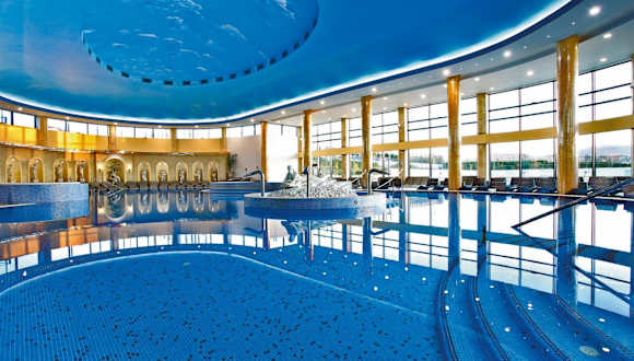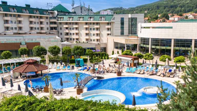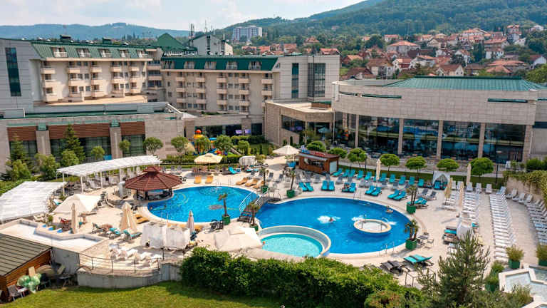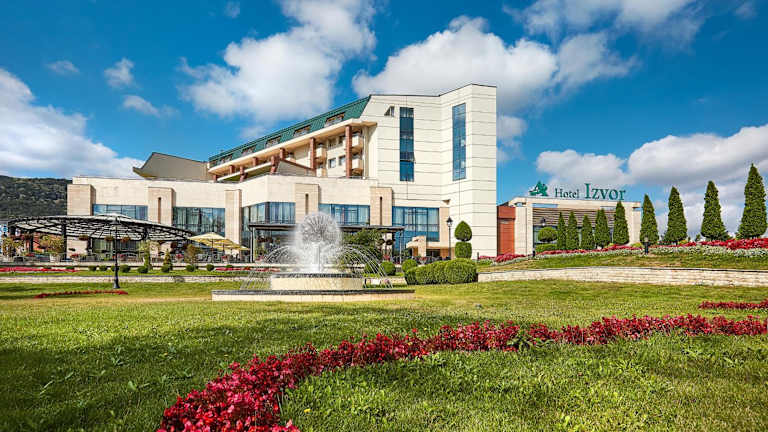 Das Hotel Izvor bietet eine luxuriöse Atmosphäre und umfassende Annehmlichkeiten, darunter ein grosses Spa mit Innen- und Aussenpools sowie einen Aquapark. Es ist eine ideale Destination für Erholung und Wellness.
