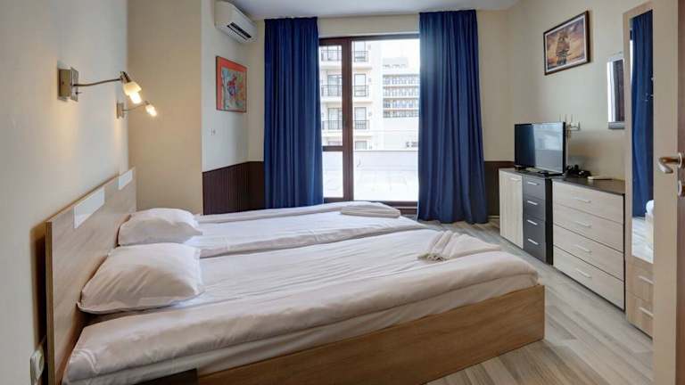 Das Hotel befindet sich im Zentrum von Goldstrand, direkt an der Hauptstrandpromenade und nur wenige Schritte vom Strand entfernt. In der Nähe befinden sich zahlreiche Attraktionen, darunter der Wasserpark Aquapolis Golden Sands, den Sie nach einer kurzen Fahrt von 6 Minuten erreichen können.