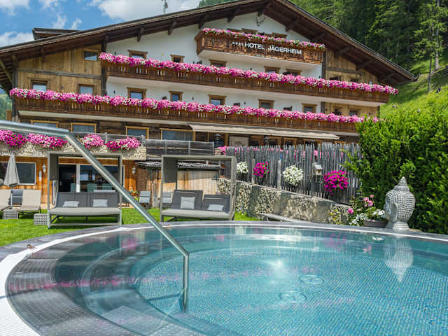 Auf der Sonnenseite der Dolomiten Das Hotel Jägerheim am Fuße des Naturparks Puez-Geisler (UNESCO Weltnaturerbe), ruhig gelegen und 50 m von der Umlaufbahn Col Raiser entfernt, ist der ideale Ausgangspunkt für unzählige Klettertouren, Wanderungen und Mountainbiketouren in frischer Bergluft, für Jung und Alt. Gerne können Sie sich auch auf unserer hauseigenen Liegewiese entspannen, während sich Ihre Kinder in freier Natur austoben können. Mit den Skiern bis zum Hoteleingang Das Hotel Jägerheim in Wolkenstein in Gröden liegt direkt an der Skipiste, 50 m von der Umlaufbahn Col Raiser, der Skibus-Haltestelle und der unterirdischen Standseilbahn Val Gardena Ronda Express entfernt, die Sie direkt mit der Sellaronda verbindet. Im Winter können Sie somit am Morgen, nach einem köstlichen und reichhaltigen Frühstück, sofort in Ihre Skischuhe springen und losbrettern. Besser geht es nicht! Warum auch Sie unser Gast sein sollten: • Am Fuße des Naturparks Puez-Geisler (UNESCO Weltnaturerbe) gelegen • Direkt an der Skipiste gelegen • 50 m von der Umlaufbahn Col Raiser entfernt • 50 m von der unterirdischen Standseilbahn Val Gardena Ronda Express (direkte Verbindung zur Sellaronda) entfernt • 50 m von der Ski-/Sommerbushaltestelle entfernt • Perfekter Ausgangspunkt für unzählige Spaziergänge, Wanderungen und Mountainbiketouren • Ruhige Lage und doch zentral gelegen • Kinderskilift und Skiverleih in unmittelbarer Nähe • (Im Sommer) Über 1.000 m² große Sonnenliegewiese zum Relaxen und Spielen mit Trampolin, Schaukel, Rutsche und Tischtennis • Einzigartige Aussicht auf den Langkofel, den Plattkofel, die Seiser Alm, den Picberg, die Geislergruppe und sogar auf die legendäre Weltcupabfahrt Saslong • Wertvolles vitales Frühstück in Buffetform mit Bio-, Bauern- und Vollwertprodukte für einen guten Start in den Tag (von 7:30 Uhr bis 10:00 Uhr) • Kuchen am Nachmittag • Abends ein Wahlmenü mit 2 kalten Vorspeisen, 2 warmen Vorspeisen, 3 Hauptspeisen, 2 Nachspeisen und üppigem Salatbuffet • Einmal wöchentlich Kaltes Vorspeisen Buffet, Dessert Buffet, Tiroler Menü • Auf Anfrage auch vegetarische und glutenfreie Menüs möglich • Eintritt und Benutzung unseres 160 m² großen Wellnessbereiches mit großer finnischen Zirbensauna, „Bergkristall“- Dampfbad, Ruheraum und Panorama-Whirlpool • Beheiztes Außen-Whirlpool und Kühlbecken • Drei Mal wöchentlich musikumrahmte Spezialaufgüsse mit rein ätherischen Ölen, verschiedenen Cremen und Peelings (im Sommer auf Anfrage) • Bademantel und Saunatuch im Zimmer • Shampoo und Bodylotion im Zimmer • WLAN-Verbindung im gesamten Hotel • Großer privater Parkplatz • Ski-/Mountainbikeraum mit Skischuhheizung und Absperrmöglichkeit • Mountainbike-Verleih • Bike-Wash • Val Gardena Mobile Card (kostenlose Busverbindung in ganz Südtirol) • Val Gardena Active Programme: Wanderungen, Mountainbike, Klettern, Nordic Walking, Schneeschuhwandern, Schnupperkurse jeglicher Art, Kultur und Geschichte aus Gröden, uvm.