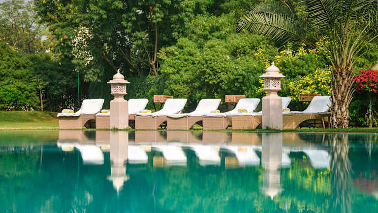 Das Hotel steht im Herzen von Jaipur und ist umgeben von einer traumhaften Gartenanlage. Sehenswürdigkeiten wie der Stadtpalast und das Hawa Mahal sind nur eine kurze Fahrt entfernt.