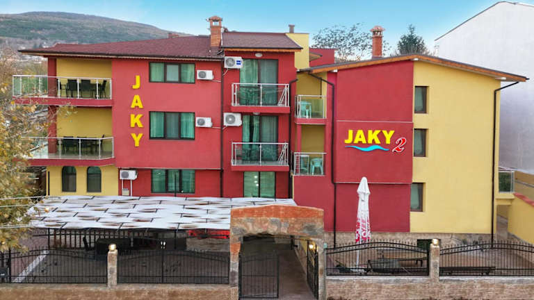 Das Hotel Jaky SPA Complex befindet sich nur 15 Gehminuten vom Strand entfernt und liegt 8 Gehminuten vom Zentrum von Kranevo. In der Umgebung finden sich eine Bushaltestelle, Supermärkte und Geschäfte, die sich in einer Distanz von nur 20 Metern befinden. Auch die Orte Albena und Golden Sands sowie der Botanische Garten von Balchik sind in einem Umkreis von 10 km erreichbar.