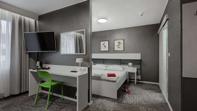 Die Apartments im Jantar Resort bieten einfache, funktionale und erschwingliche Unterkünfte. Sie sind mit einem TV, einem Radio und einem Kühlschrank ausgestattet und bieten mehr Platz als herkömmliche Hotelzimmer dieser Kategorie. Die Unterkünfte sind ideal für Gäste, die Wert auf Komfort und Funktionalität legen.